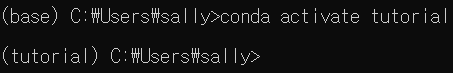 기본 base 아래 tutorial 이라는 가상환경이 생긴 것을 확인할 수 있다.