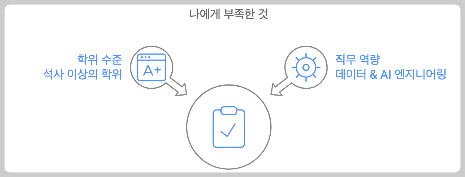 다른 직무에 비해 '데이터 과학자'는 석사 이상의 학위를 요구하는 회사가 많았다. 규모가 큰 회사일수록 더더욱. 석사 이상 조건이 없는 경우에는 엔지니어링 역량이 특히 요구되었다. 둘 다 단기간에 만들기 어려운 것들이다.