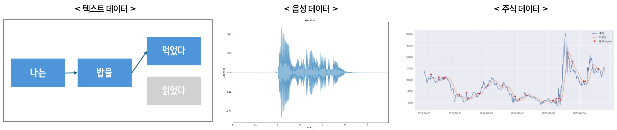 시퀀스(순서가 있는 데이터)를 처리하거나 생성하는 데 사용되는 머신러닝 및 딥러닝 모델을 말합니다. 앞의 단어가 뒤에 올 단어에 영향을 미치는 텍스트, 음성 데이터나 시계열 데이터 등 순서가 필수적인 데이터들을 처리하는 모델입니다.