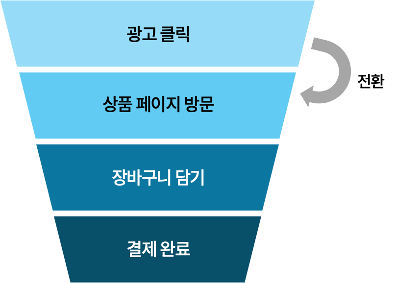 - 단계별 사용자 이동 분석 : 광고 클릭 → 상품 페이지 방문 → 장바구니 담기 → 결제 완료 등 사용자 이동 경로를 분석합니다.